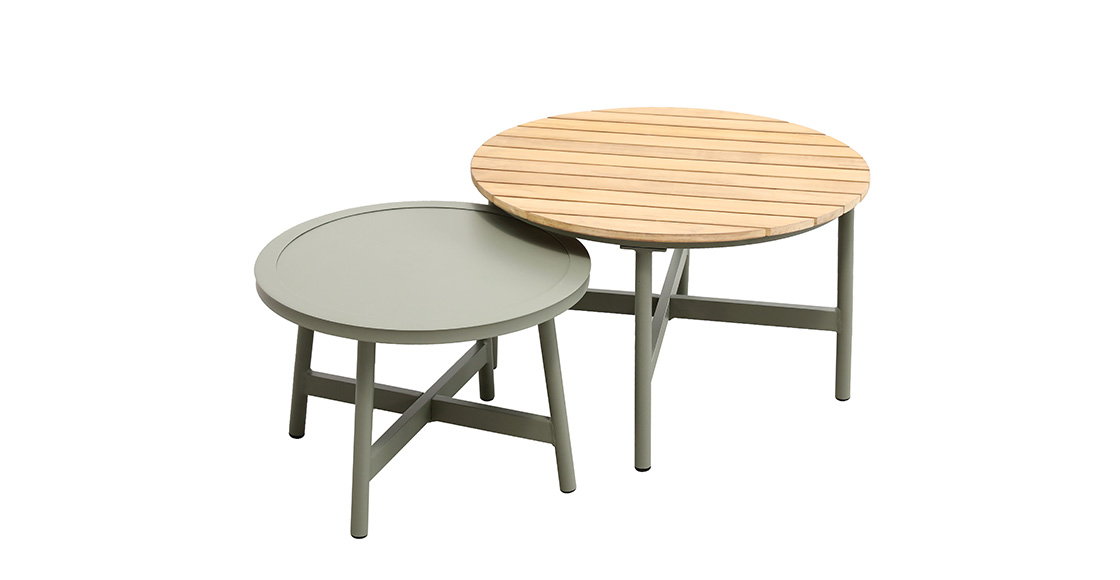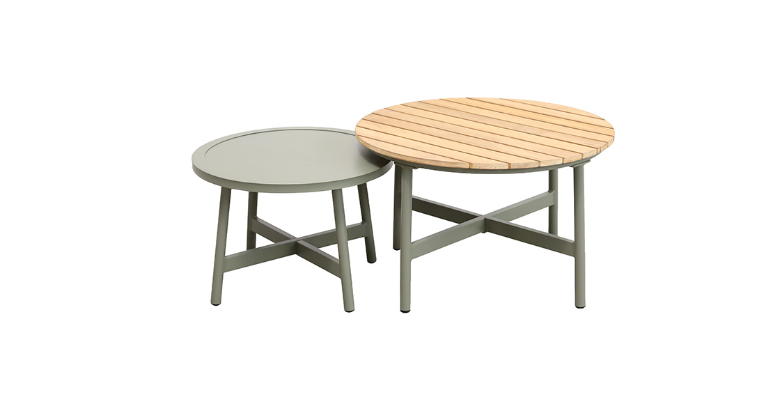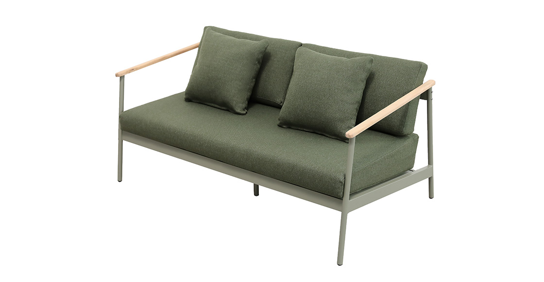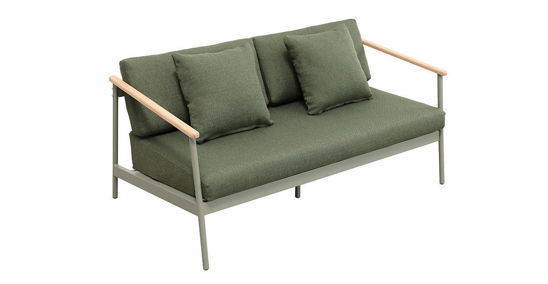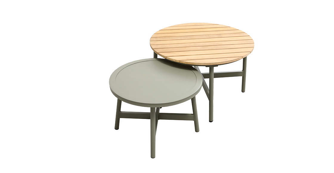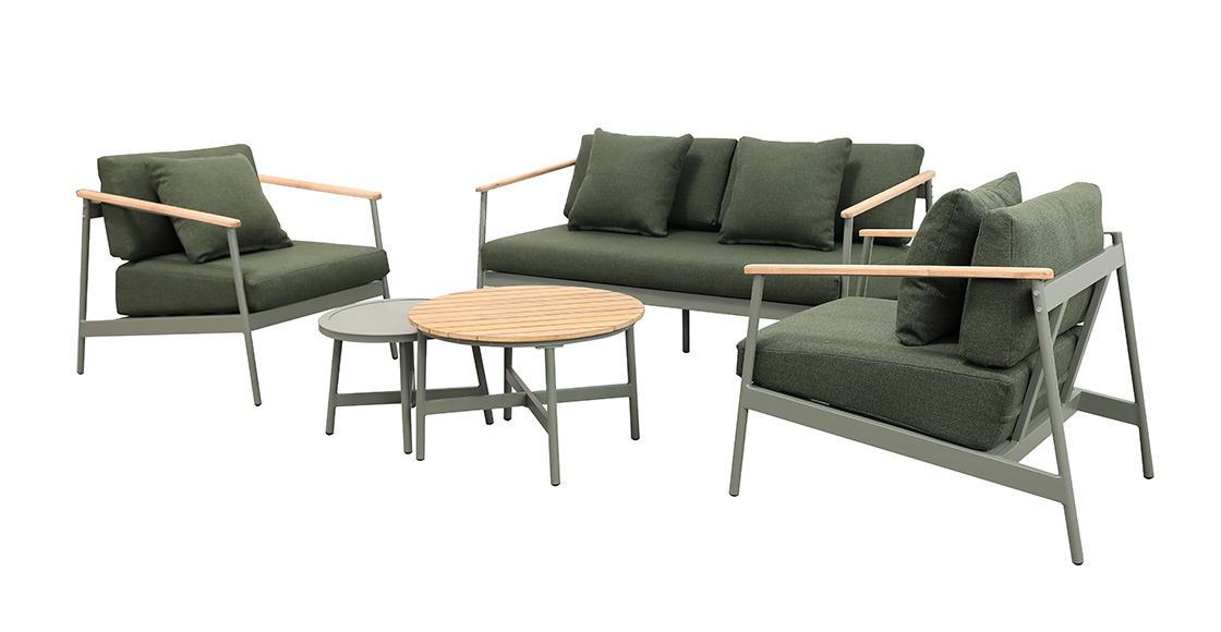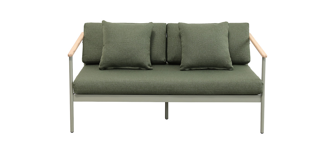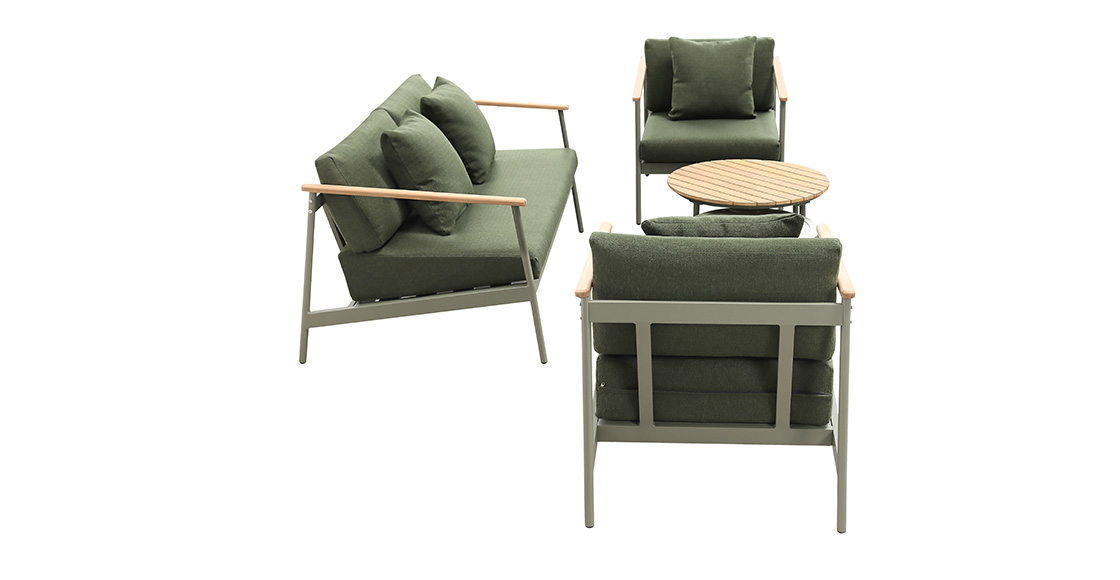 2pcs单人沙发:76*95*71cm+1pc双人沙发:160*95*71cm,脚管:∅28圆管,坐板:80*10,扶手带柚木配20cm厚坐、背垫,带4个抱枕,布面料短纤布+1pc大圆茶几:∅71*44cm,茶几面整张柚木+1pc小圆茶几: ∅54.5*38cm,茶几面整张铝板,表面普通喷塑处理。